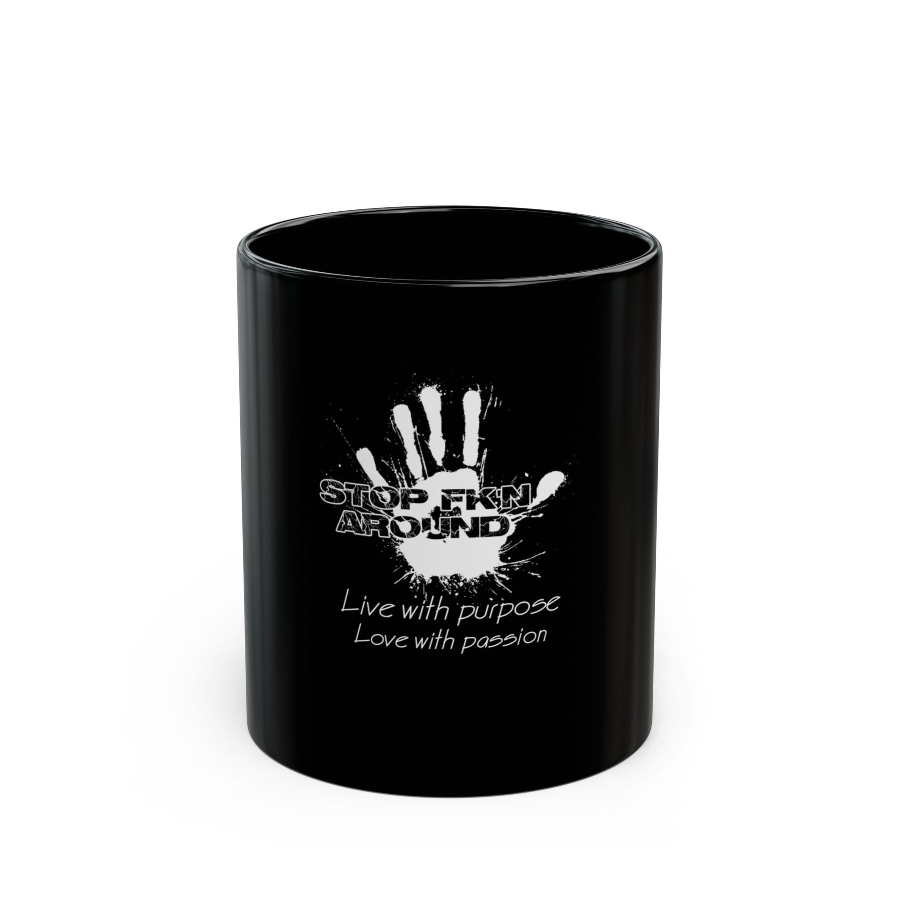 Start your day with a bold statement and a hot drink in the Stop Fk’n Around mug. This sleek black ceramic mug is perfect for warming your soul while making a statement.